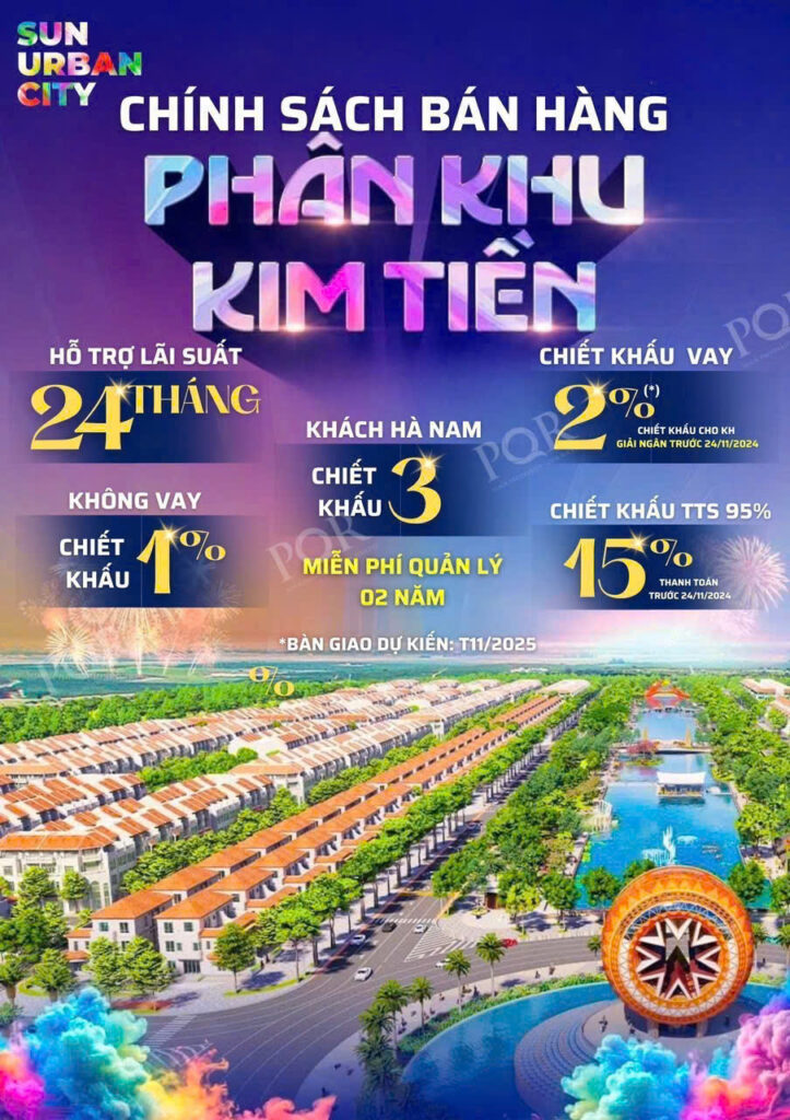 Sun Urban City Hà Nam mang đến cơ hội đầu tư không thể bỏ lỡ với hàng loạt chính sách ưu đãi vượt trội, giúp khách hàng dễ dàng sở hữu sản phẩm bất động sản đẳng cấp: